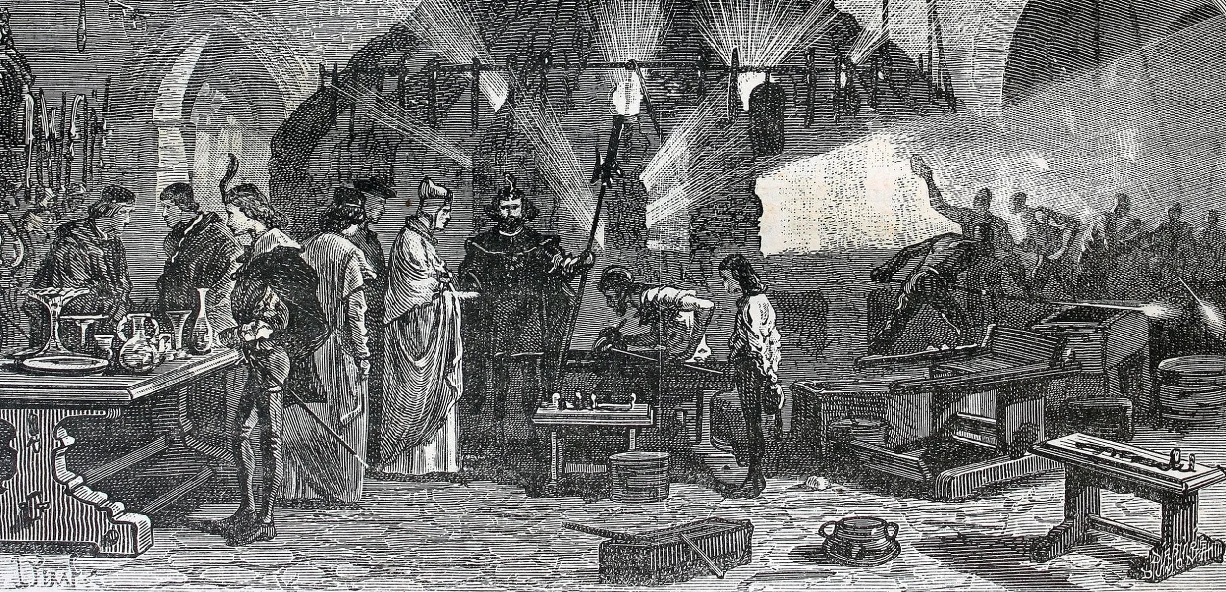 The first depiction of the magnifying glass and rivet-frame (1352)