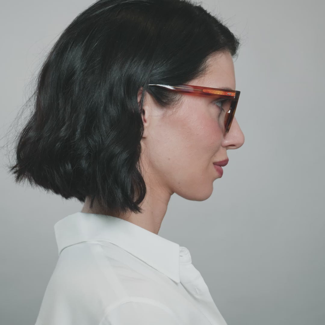 The Compton is a bold, thick-rimmed frame, designed in London, made in full handmade luxury cellulose acetate with traditional crafted pin hinges to create a strong characterful yet easily wearable shape in a choice of size options for the perfect fitting spectacles or sunglasses.